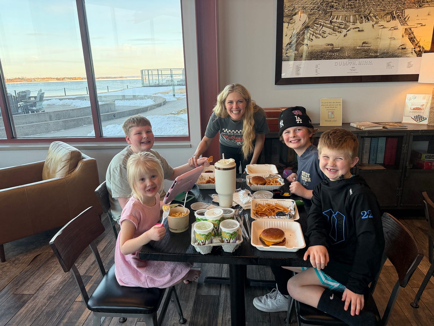 I took the kids to Duluth for a night away. This was the first time I’ve taken all four kids by myself to a hotel alone.